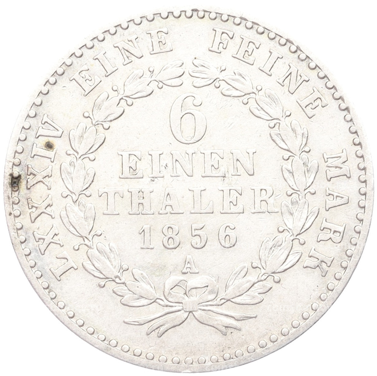 Монета 1/6 талера 1856 года A Ангальт -Бернбург