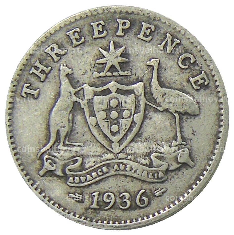 Монета 3 пенса 1936 года Австралия