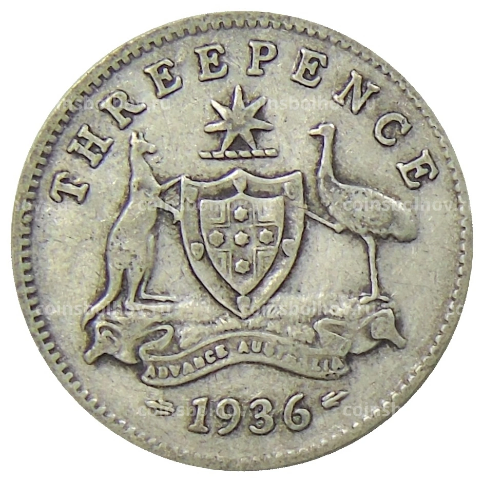 Монета 3 пенса 1936 года Австралия