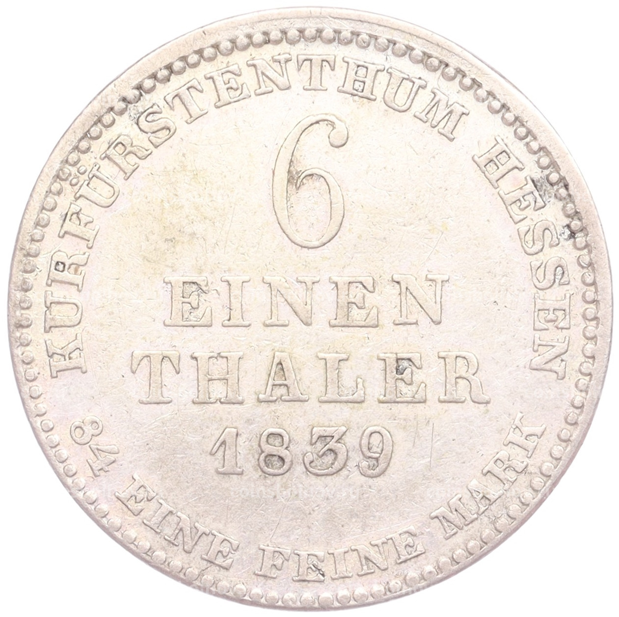 Монета 1/6 талера 1839 года Курфюршество Гессен-Кассель