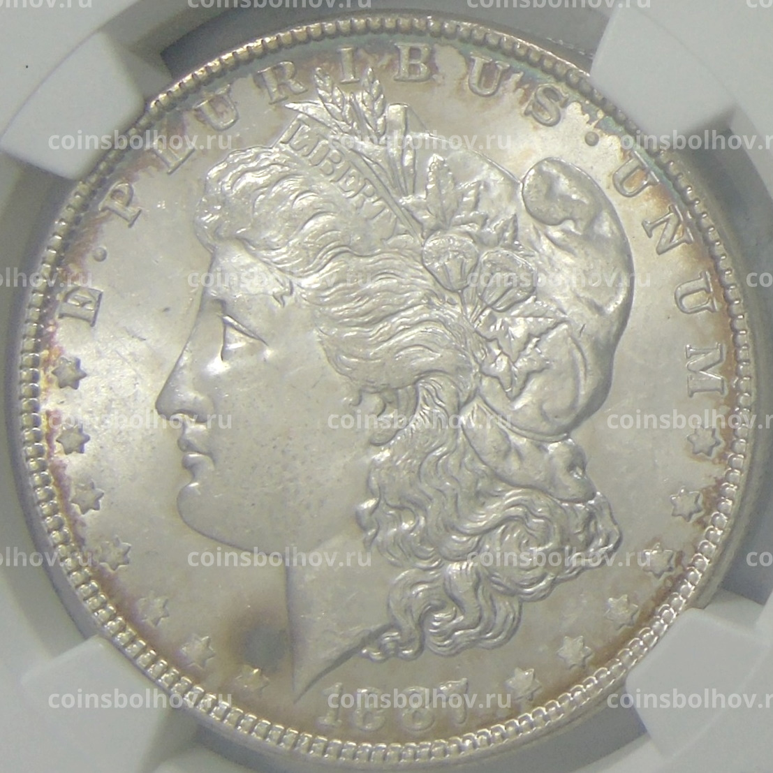 1 доллар 1887 года США «Доллар Моргана» (в слабе NGC MS 63)