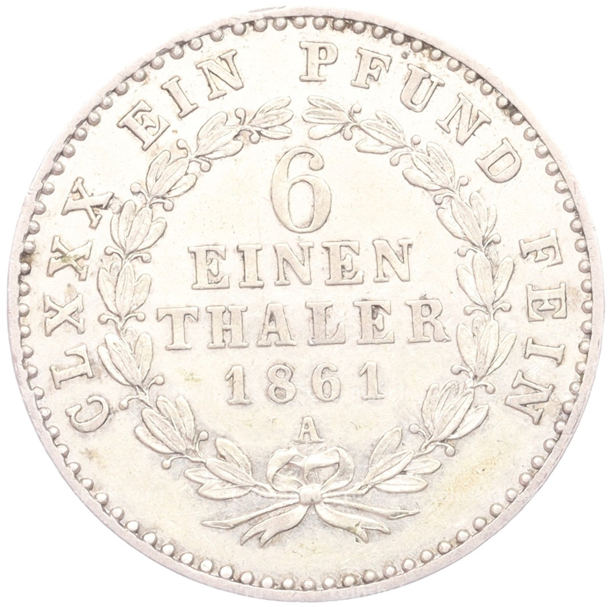 Монета 1/6 талера 1861 года A Ангальт-Бернбург