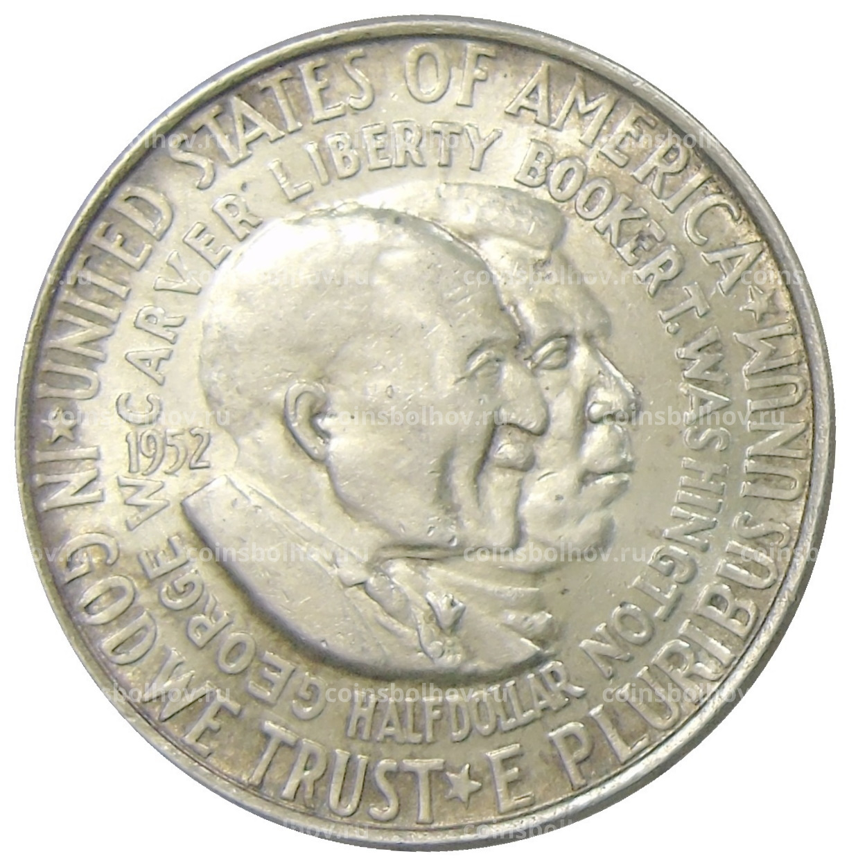 1/2 доллара (50 центов) 1952 года США «Джордж Вашингтон Карвер и Букер Талиафер Вашингтон»