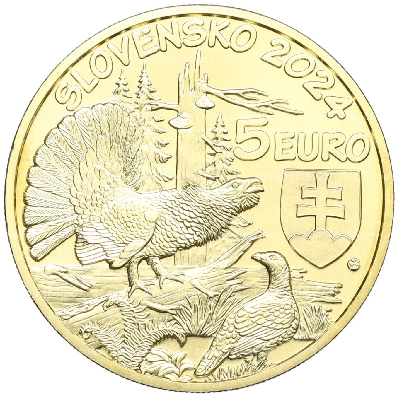 Монета 5 евро 2024 года Словакия «Глухарь»