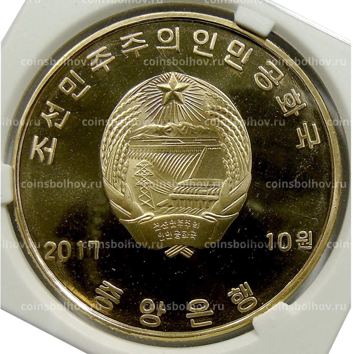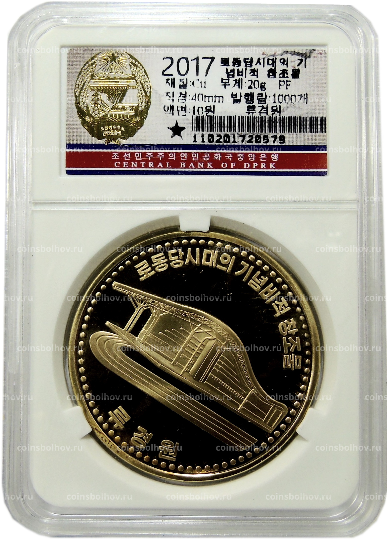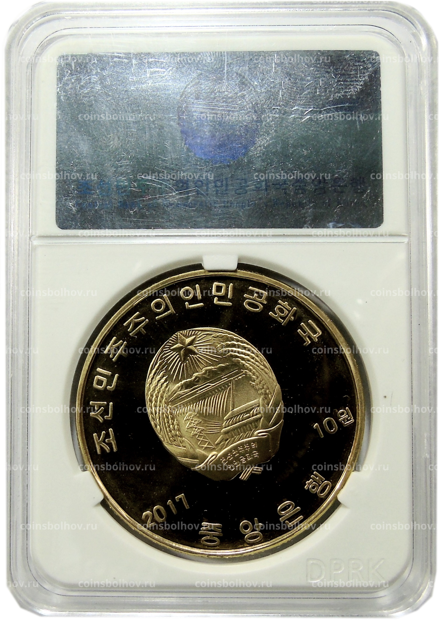 Монета 10 вон 2017 года Северная Корея «Здание» (В слабе Центрального банка КНДР)