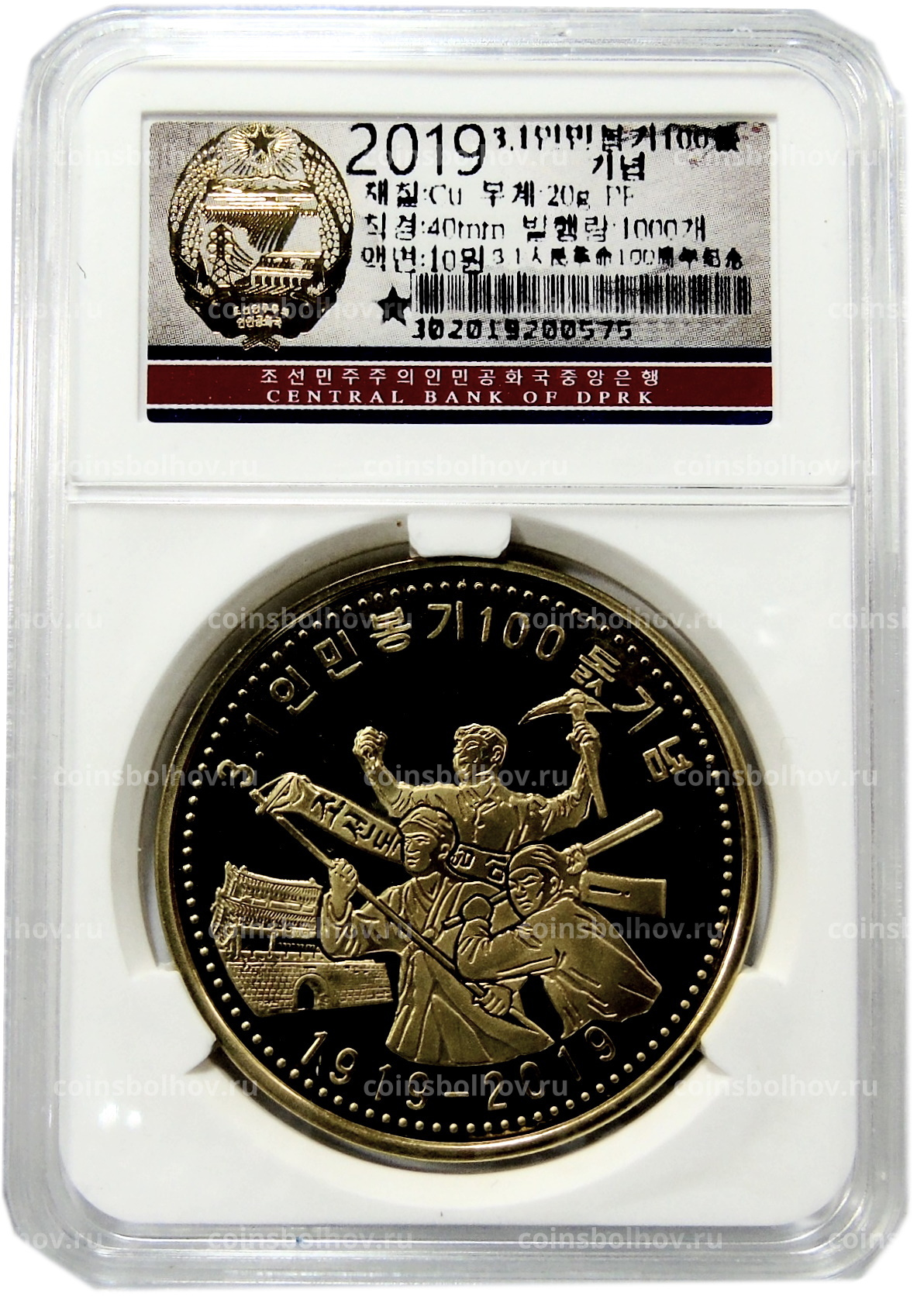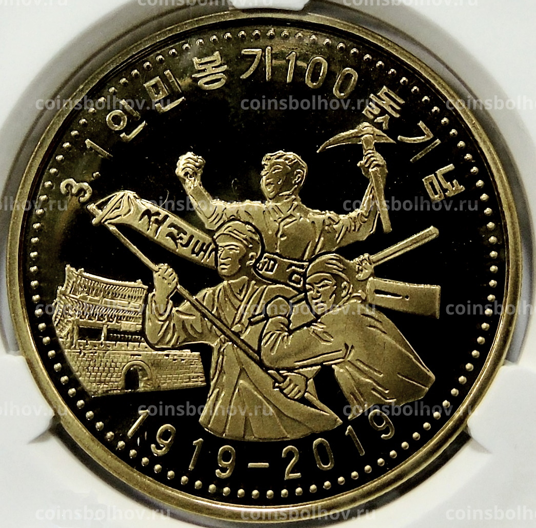 Монета 10 вон 2019 года Северная Корея «100 лет Восстанию против японского правления» (В слабе Центрального банка КНДР)