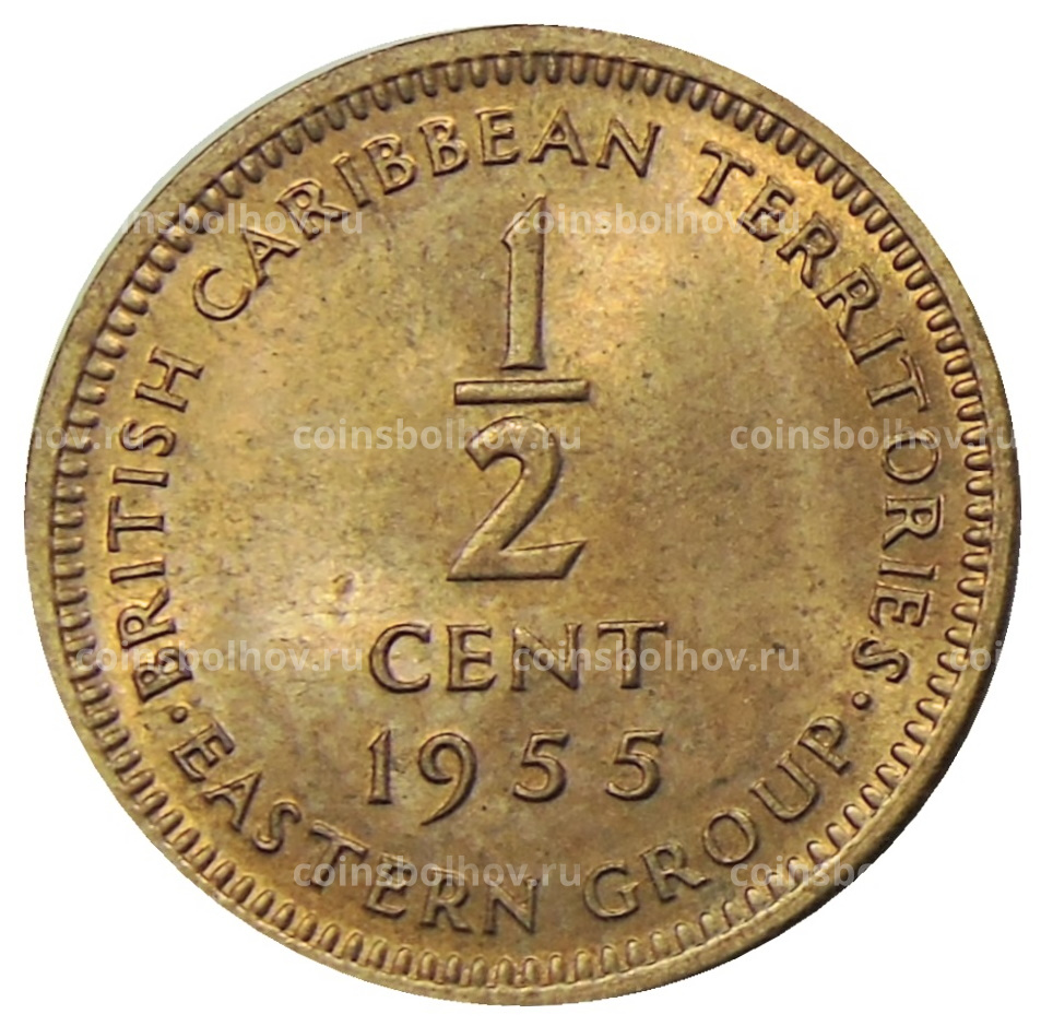 Монета 1/2 цента 1955 года Британские Восточные Карибы