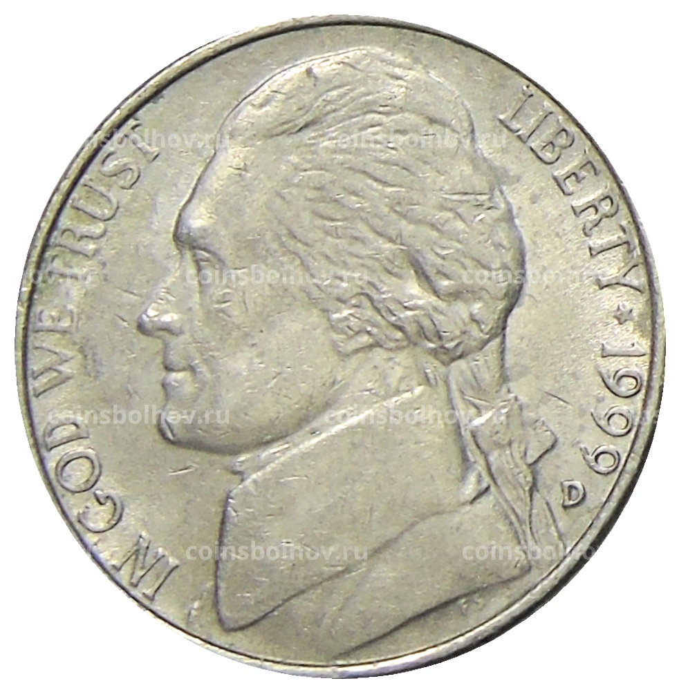 Монета 5 центов 1999 года D США