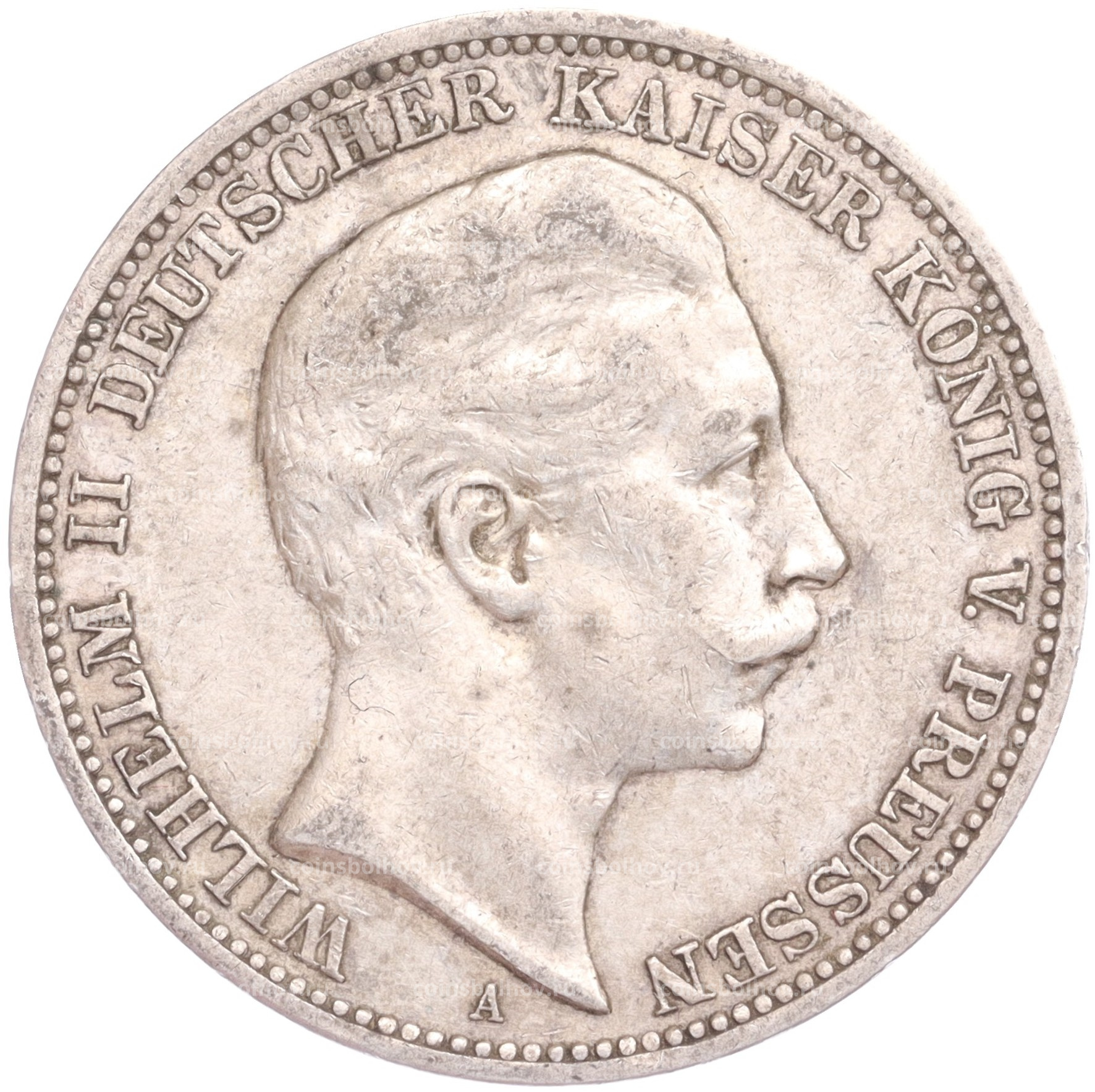 Монета 3 марки 1909 года А Германия (Пруссия) (аверс) Монета 3 марки 1909 года А Германия (Пруссия) (реверс)