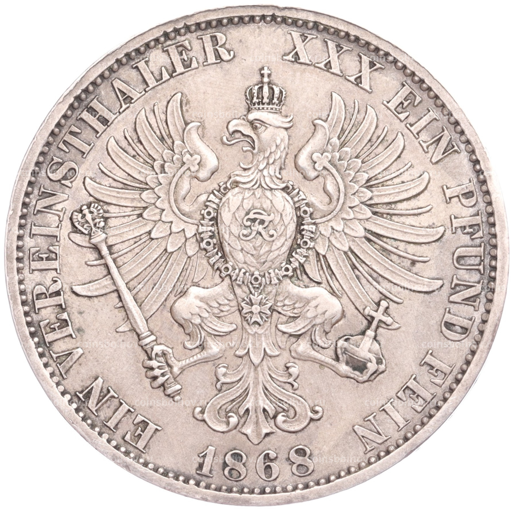 Монета 1 союзный талер 1868 года A Пруссия