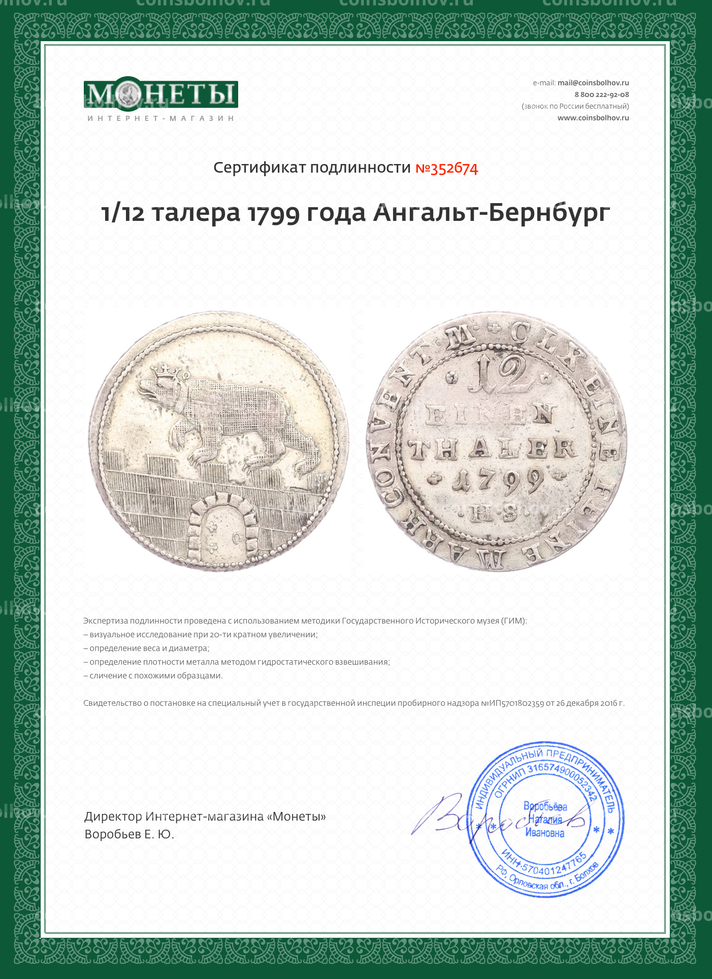 - Номинал1/12 талера