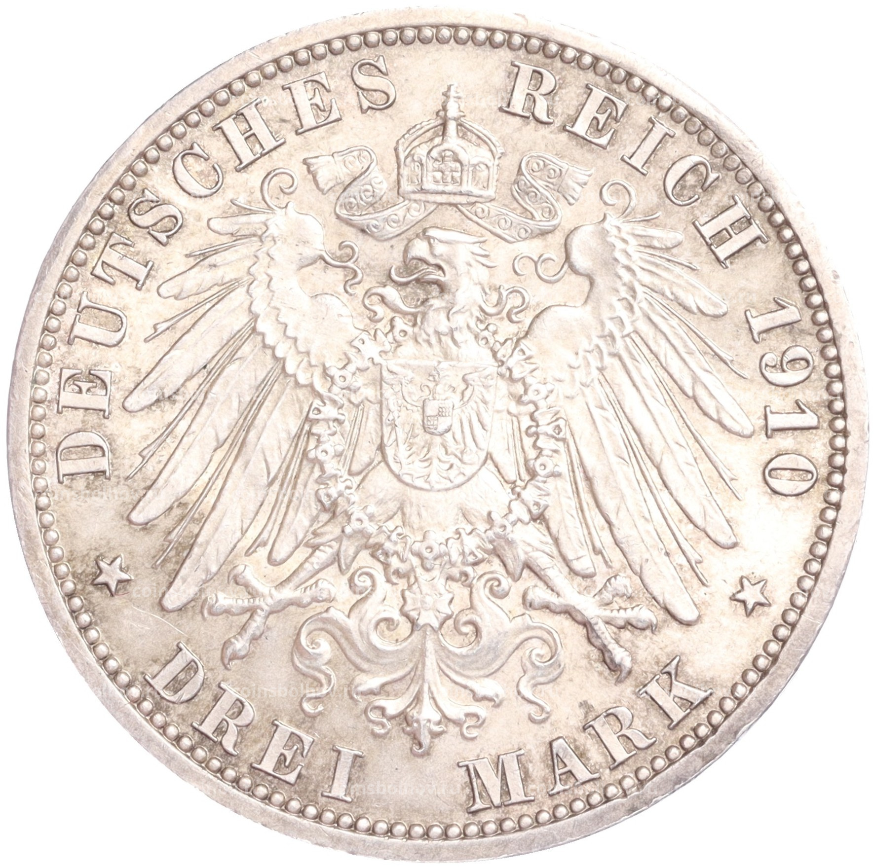 Монета 3 марки 1910 года A Германия (Гессен) (аверс) Монета 3 марки 1910 года A Германия (Гессен) (реверс)