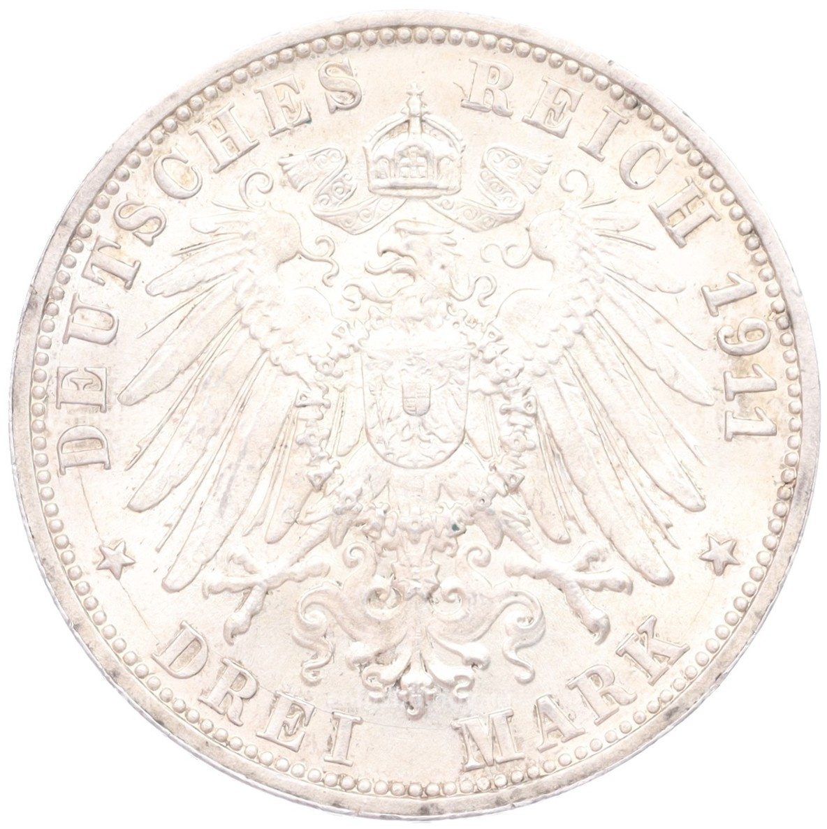 Монета 3 марки 1911 года F Германия (Вюртемберг) «25 лет свадьбе Вильгельма II и Шарлотты»