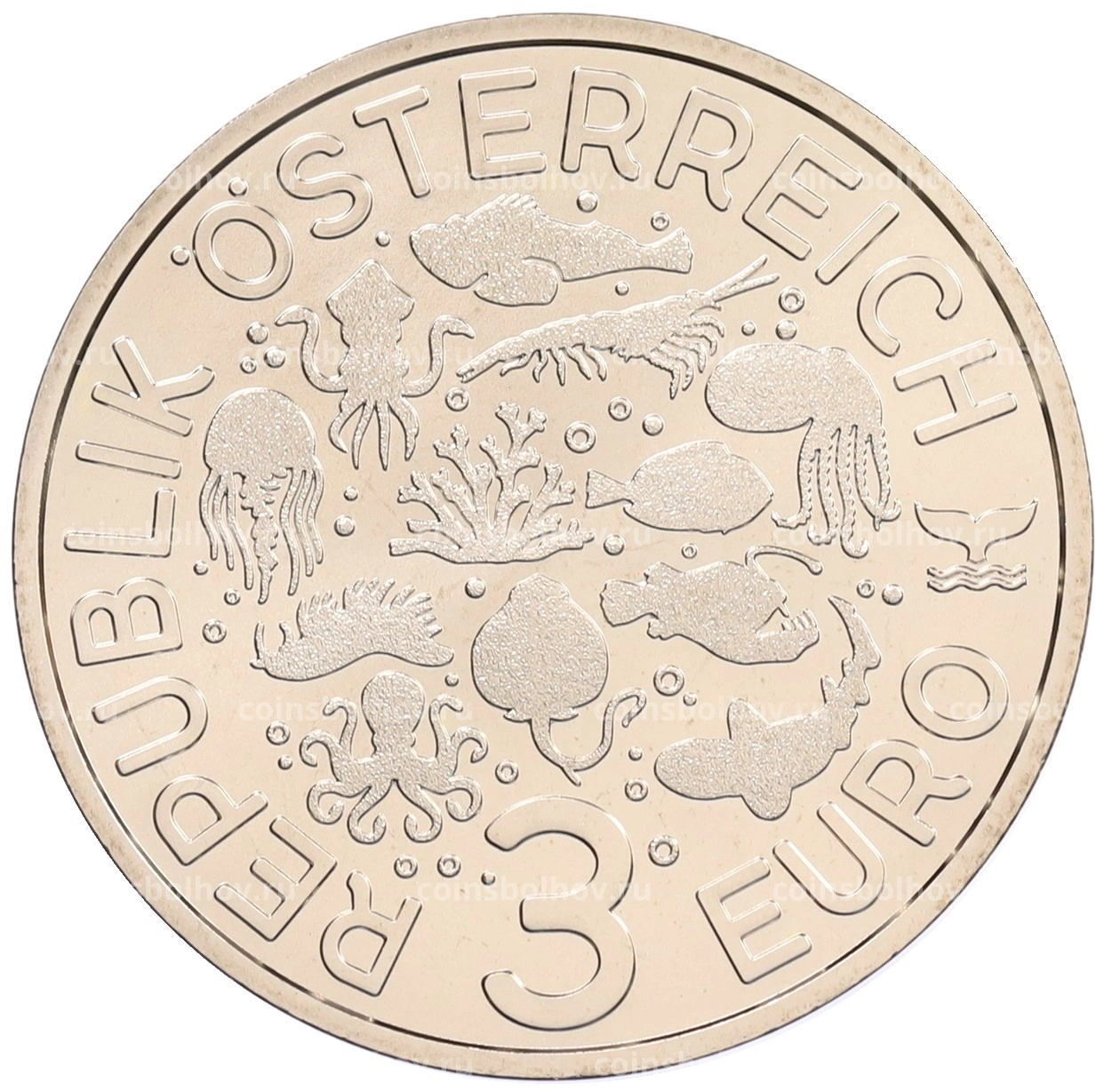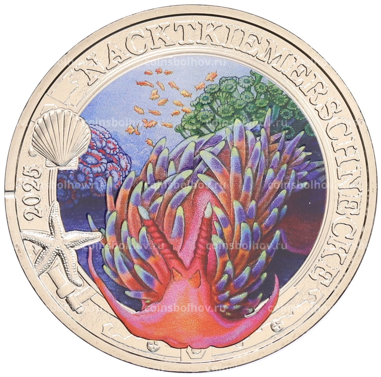 Монета 3 евро 2025 года Австрия «Светящаяся морская жизнь — Голожаберный моллюск»