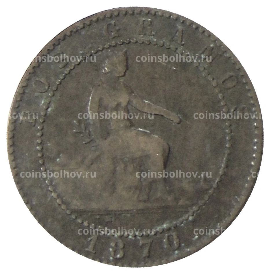 Монета 2 сентимо 1870 года Испания