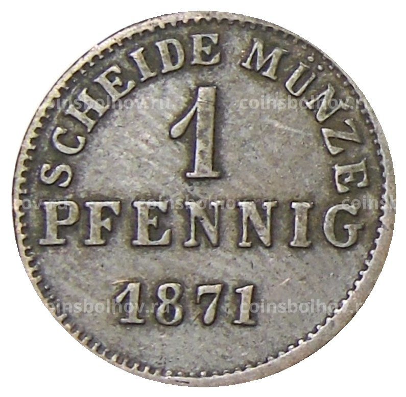 Монета 1 пфенниг 1871 года Германсике государства — Гессен-Дармштадт