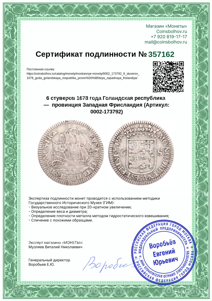 - Номинал 6 стуверов