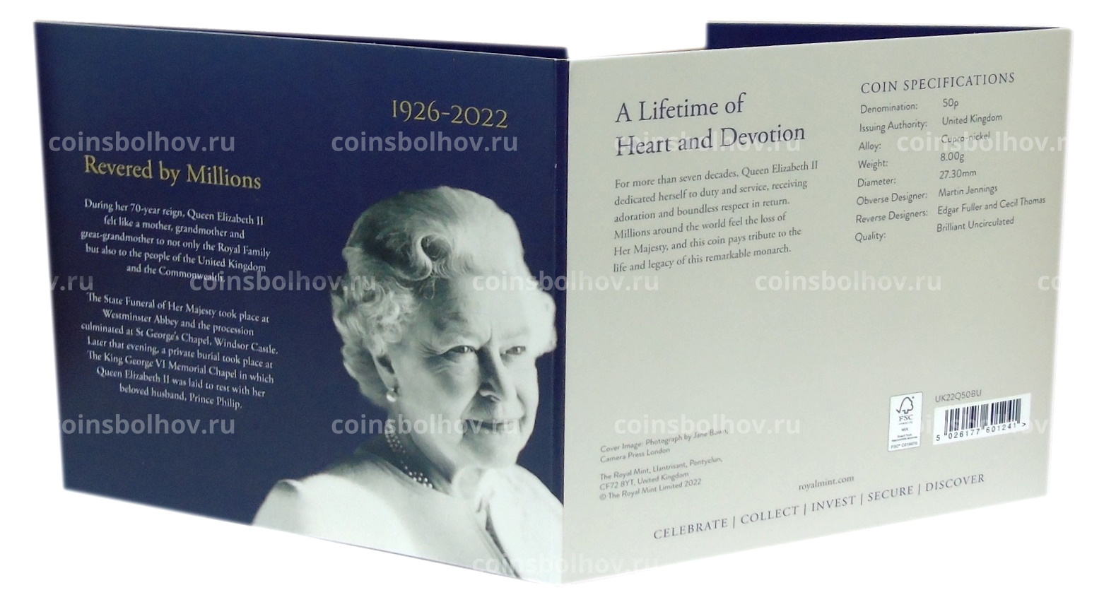 Монета 50 пенсов 2022 года Великобритания «Жизнь и наследие королевы Елизаветы II» (в блистере)