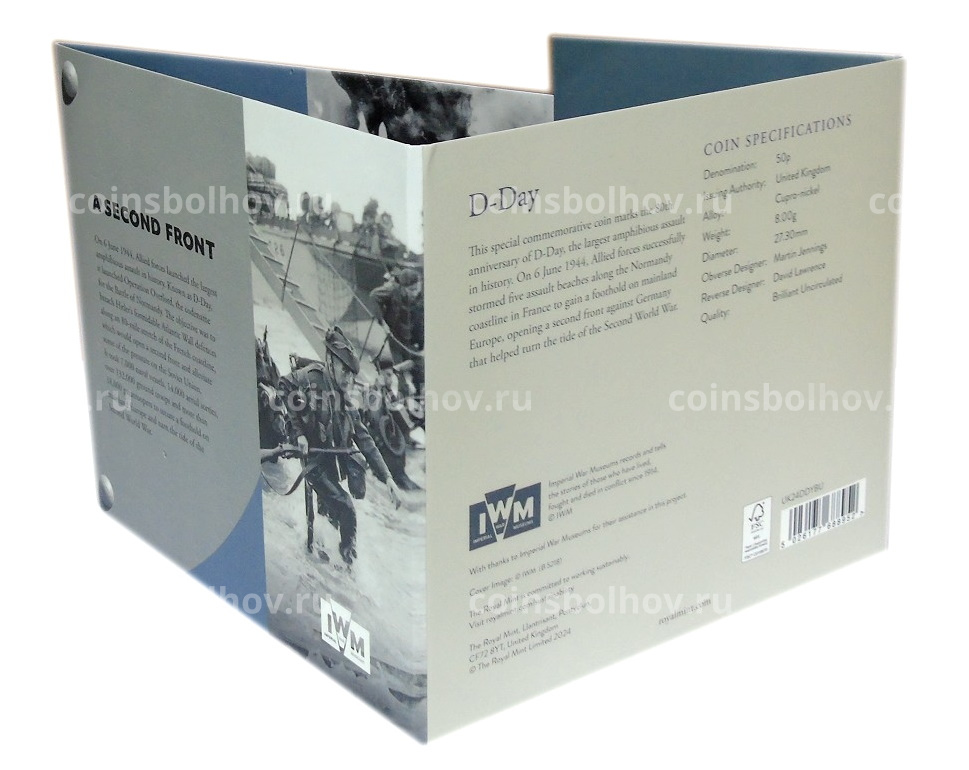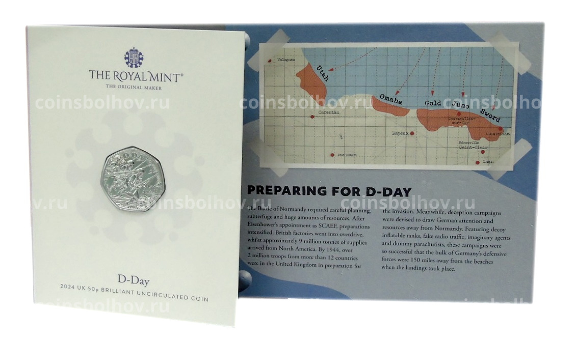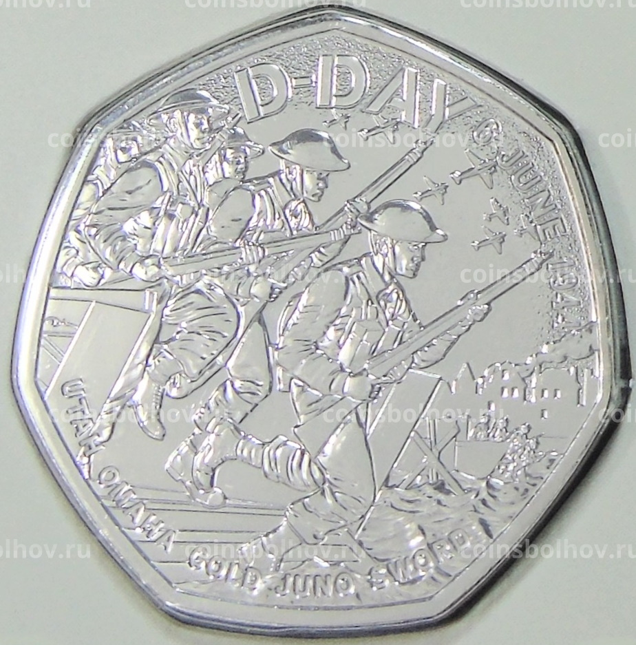 Монета 50 пенсов 2024 года Великобритания «Высадка в Нормандии (День «Д»)» (в блистере)