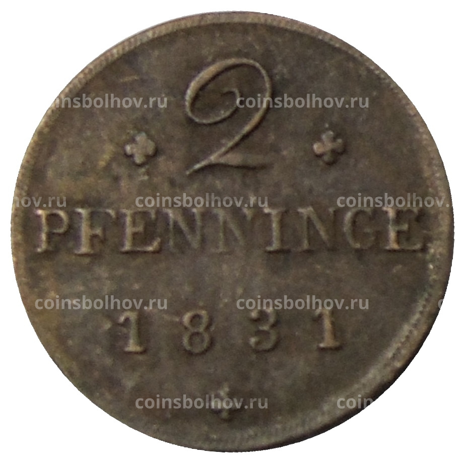 2 пфеннига 1831 года Германские государства — Мекленбург-Шверин