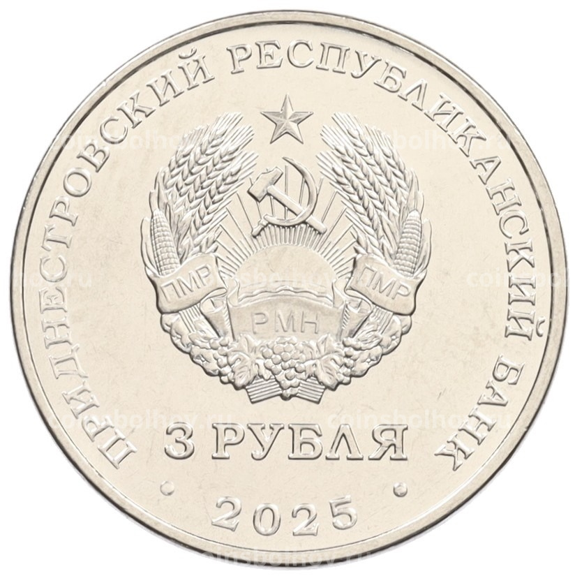 Монета 3 рубля 2025 года Приднестровье «80 лет параду Победы»