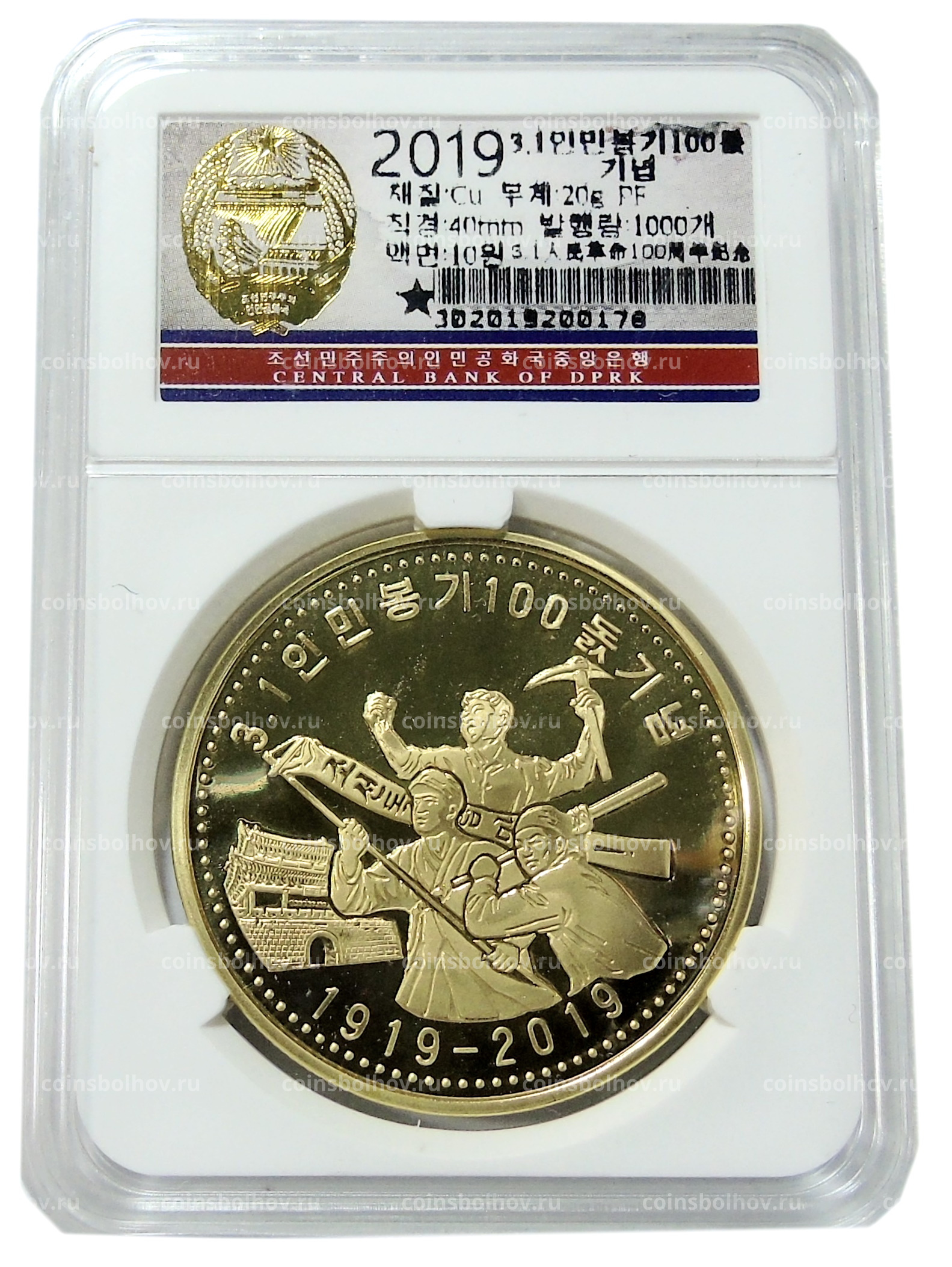 Монета 10 вон 2019 года Северная Корея «100 лет Восстанию против японского правления» (В слабе Центрального банка КНДР)