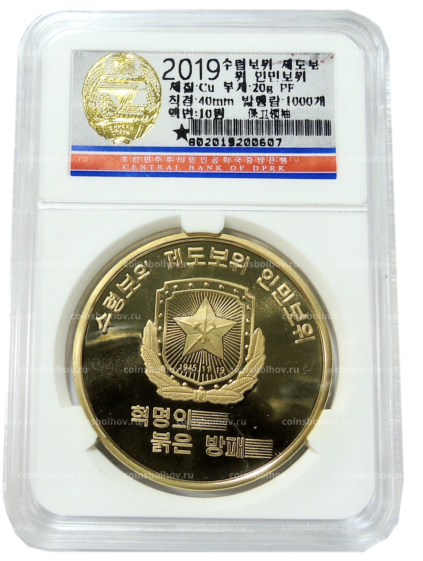 Монета 10 вон 2019 года Северная Корея «Создание военизированных формирований» (В слабе Центрального банка КНДР)