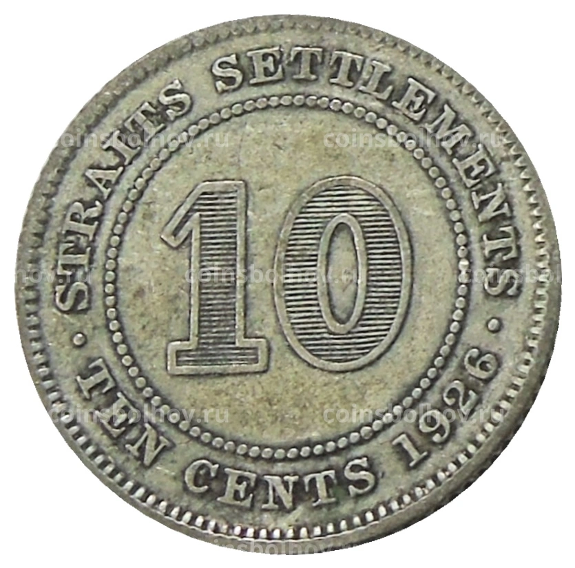 Монета 10 центов 1926 года Стрейтс Сетлментс