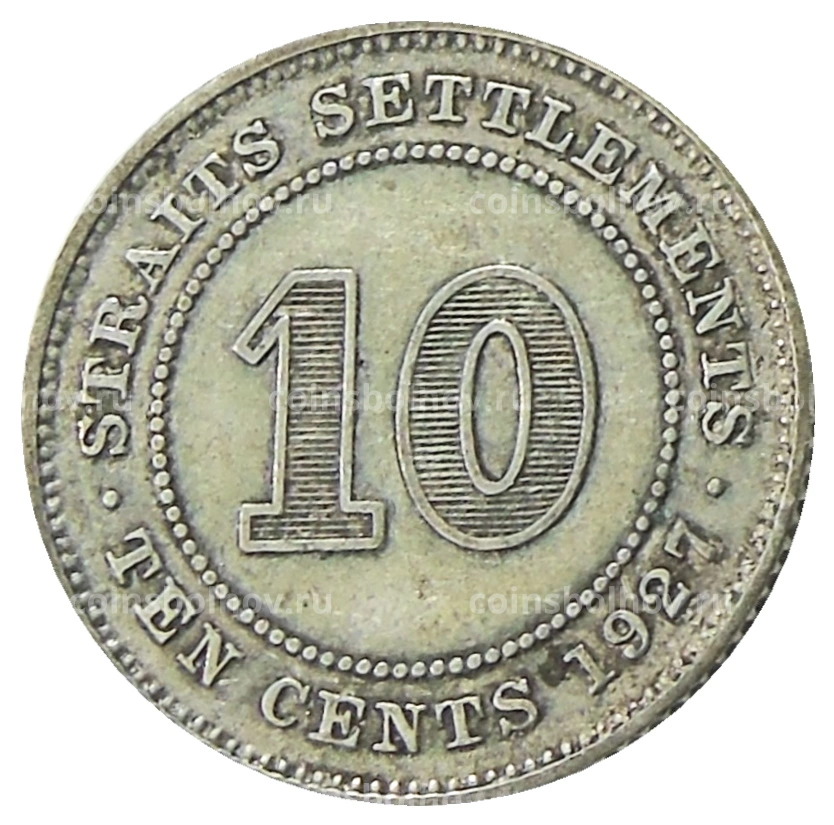 Монета 10 центов 1927 года Стрейтс Сетлментс