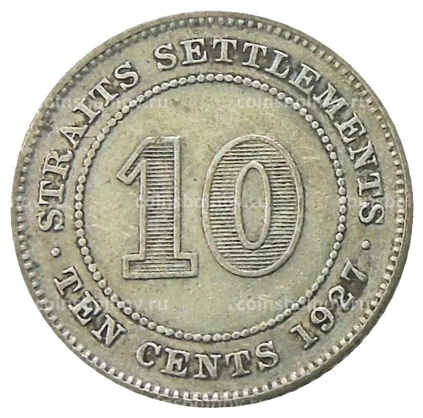Монета 10 центов 1927 года Стрейтс Сетлментс