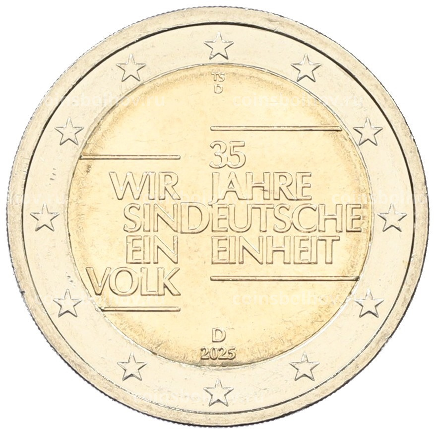 Монета 2 евро 2025 года D Германия «35 лет объединению Германии»