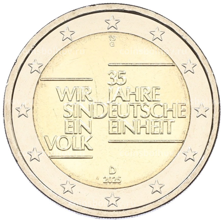 Монета 2 евро 2025 года G Германия «35 лет объединению Германии»