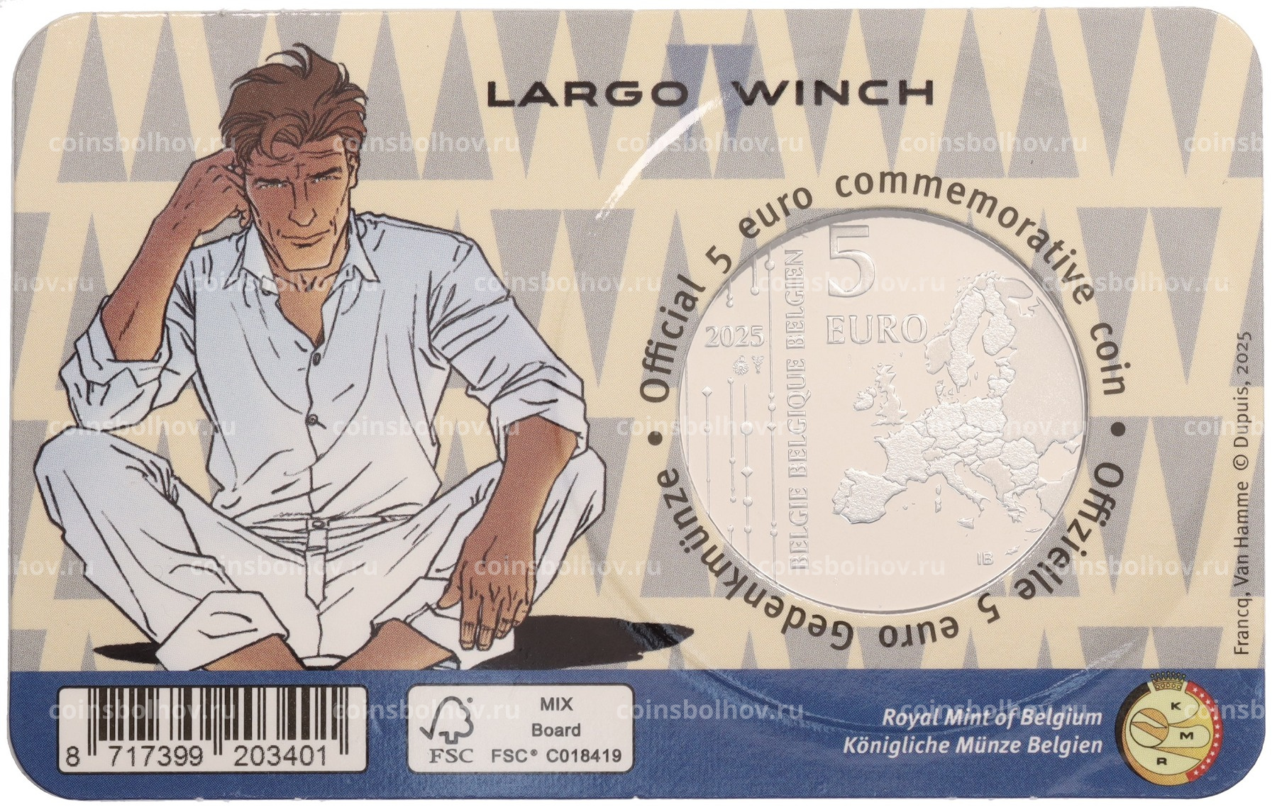 Монета 5 евро 2025 года Бельгия «Ларго Винч» (в блистере)