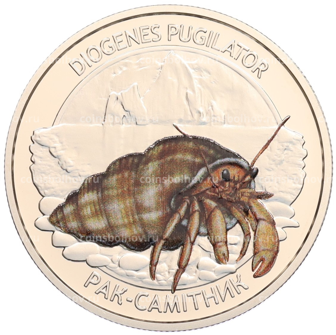 Монета 5 гривен 2025 года Украина «Глубоководные обитатели — Рак-отшельник (Обитатели Черного моря)»