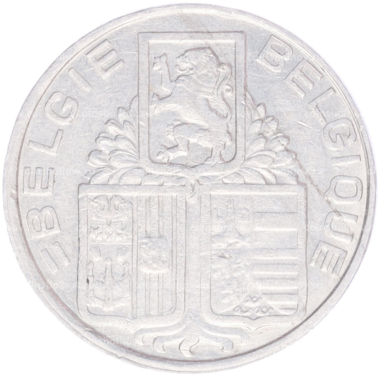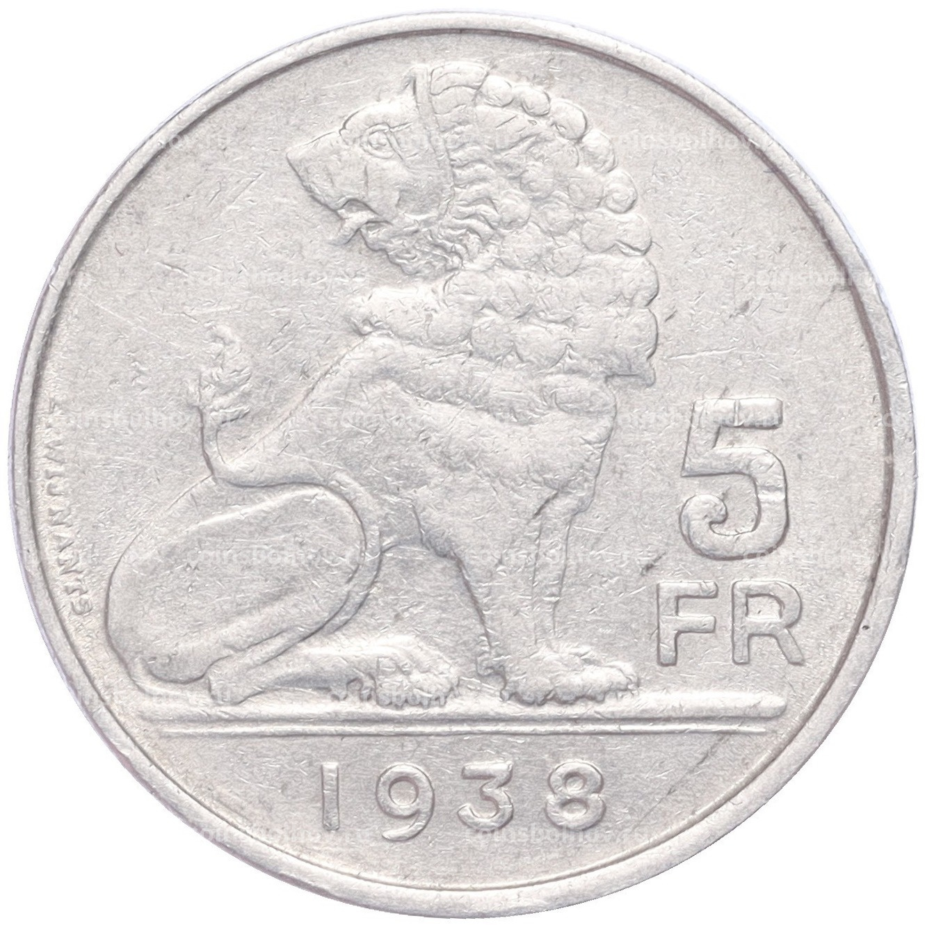 Монета 5 франков 1938 года Бельгия Надпись «BELGIE — BELGIQUE», гурт с изображением короны