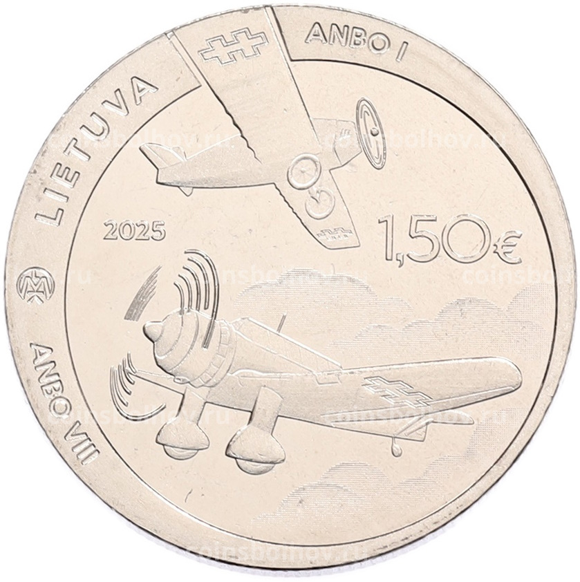 Монета 1.5 евро 2025 года Литва «100-летний юбилей — Самолет ANBO»