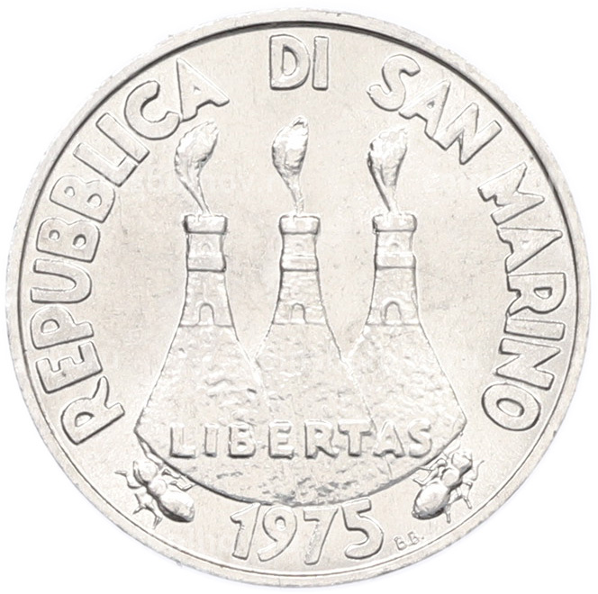 Монета 5 лир 1975 года Сан-Марино