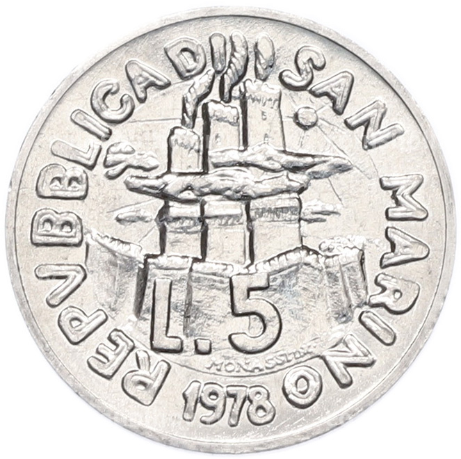 Монета 5 лир 1978 года Сан-Марино