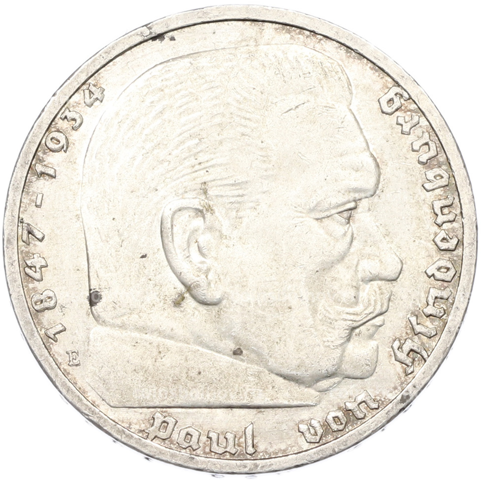 Монета 5 рейхсмарок 1936 года E Германия