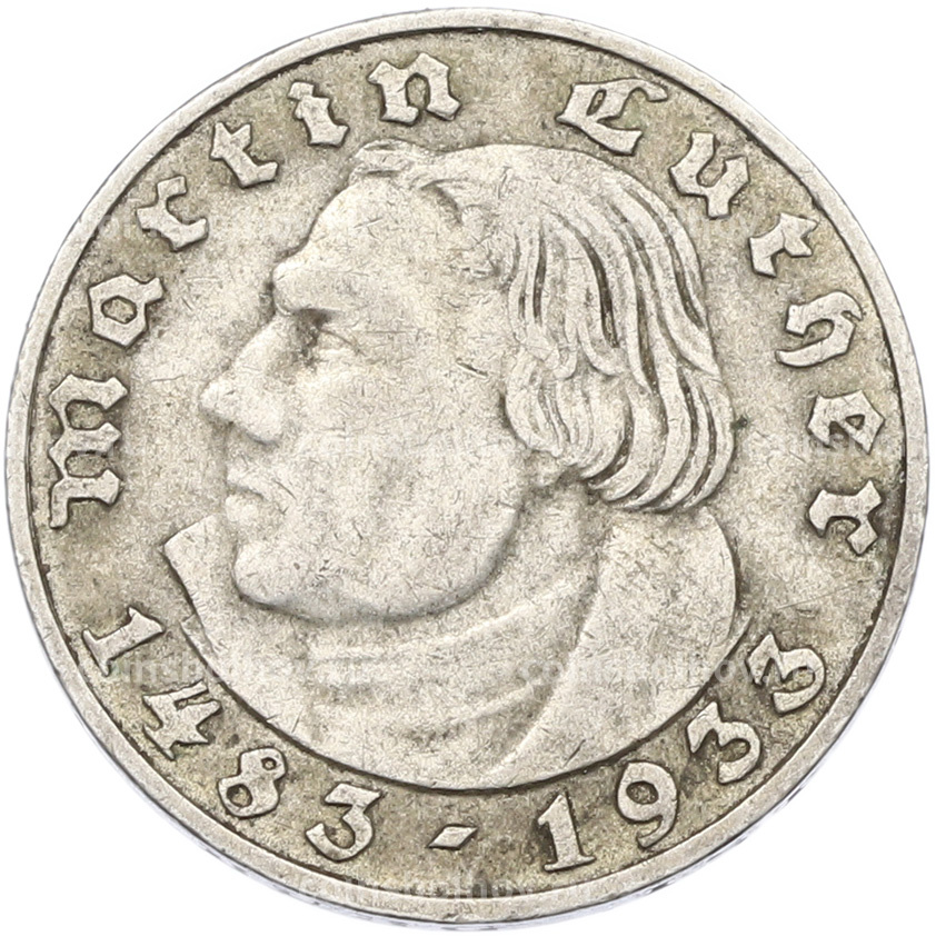 Монета 2 рейхсмарки 1933 года A Германия «450 лет со дня рождения Мартина Лютера»