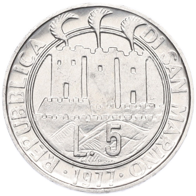 Монета 5 лир 1977 года Сан-Марино «Экология»