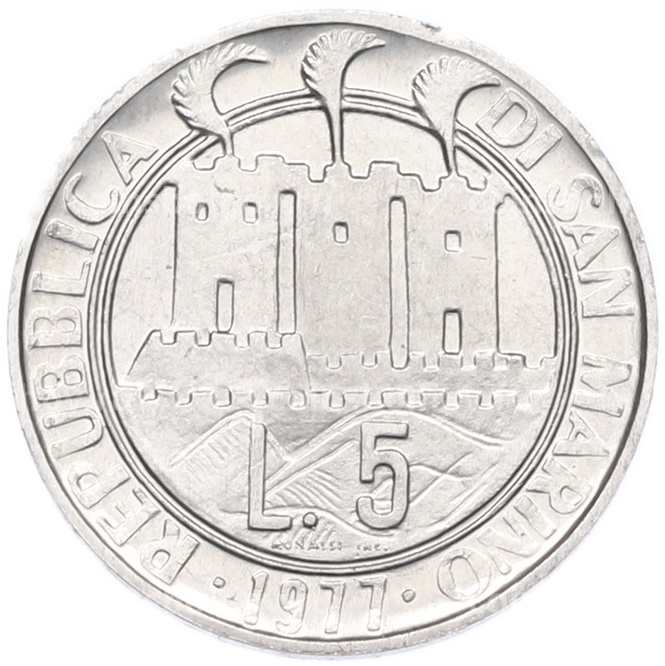Монета 5 лир 1977 года Сан-Марино «Экология»