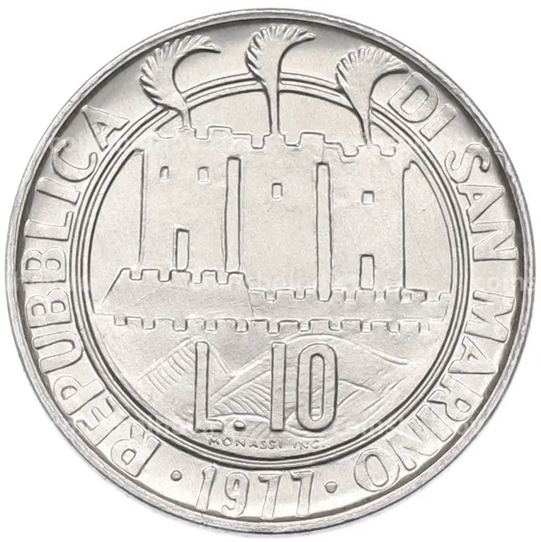 Монета 10 лир 1977 года Сан-Марино