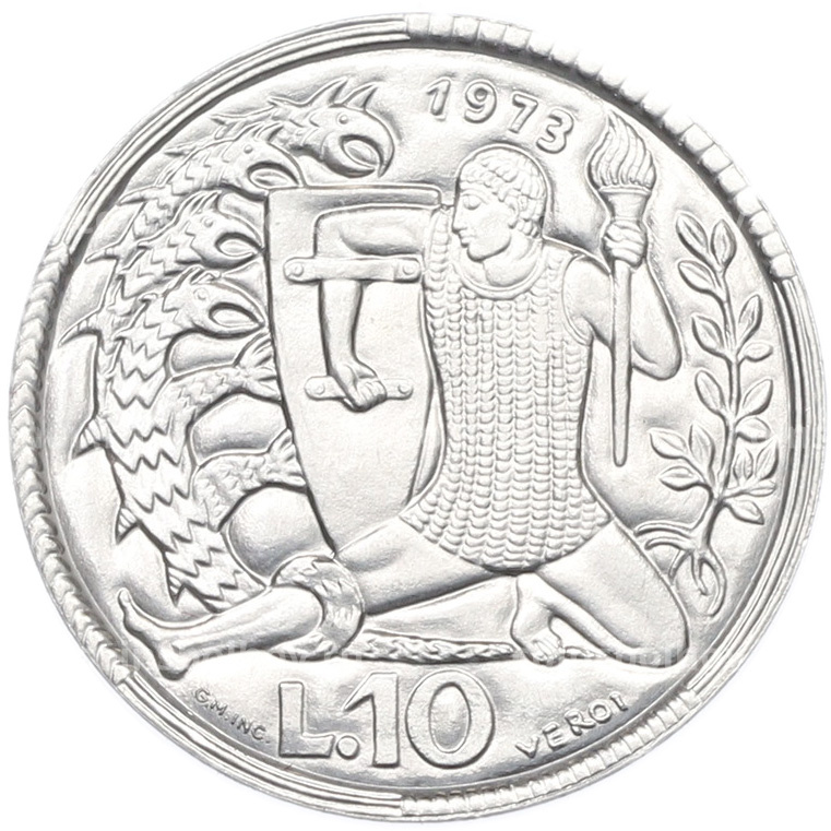 Монета 10 лир 1973 года Сан-Марино