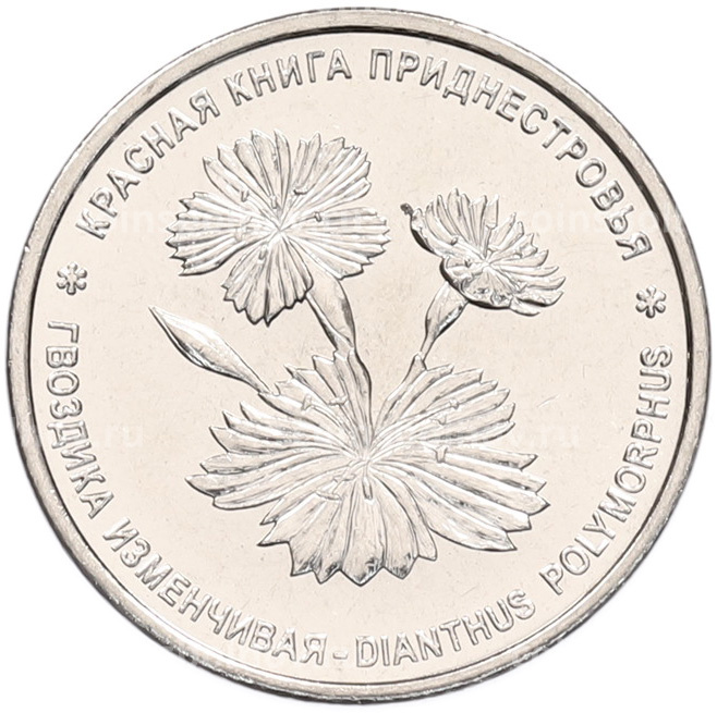 Монета 1 рубль 2025 года Приднестровье «Красная книга — Гвоздика изменчивая»