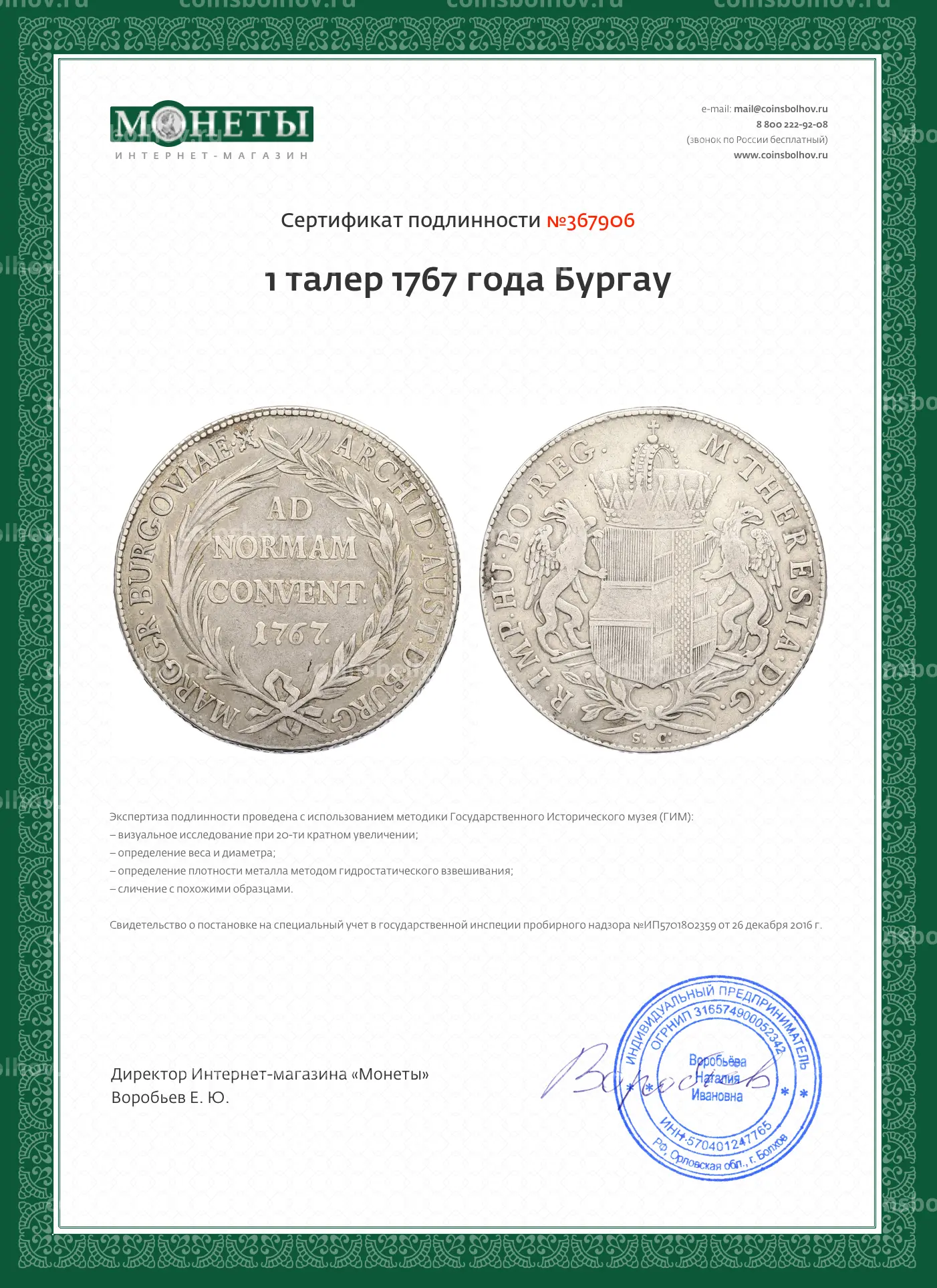 Монета 1 талер 1767 года Бургау