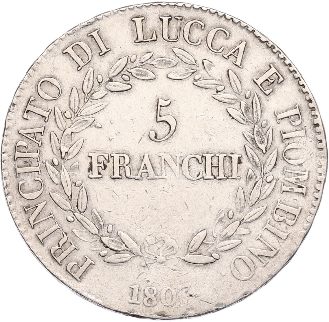 Монета 5 франков 1807 года Лукка и Пьомбиньо