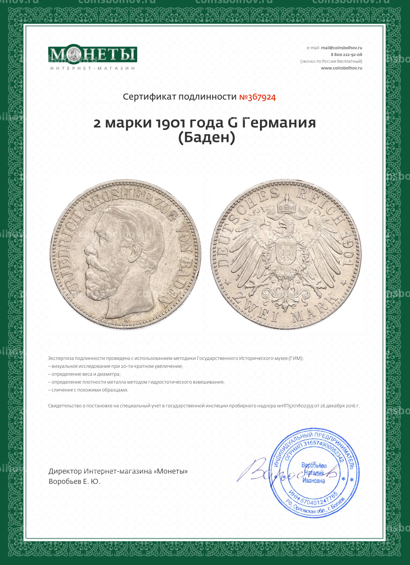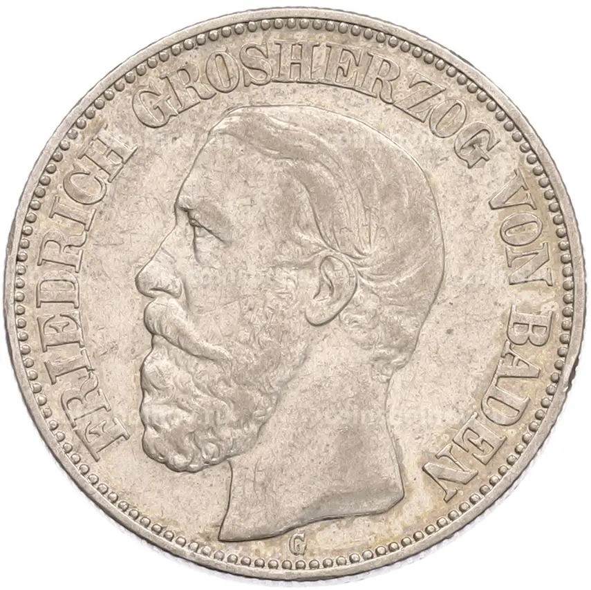 Монета 2 марки 1901 года G Германия (Баден)