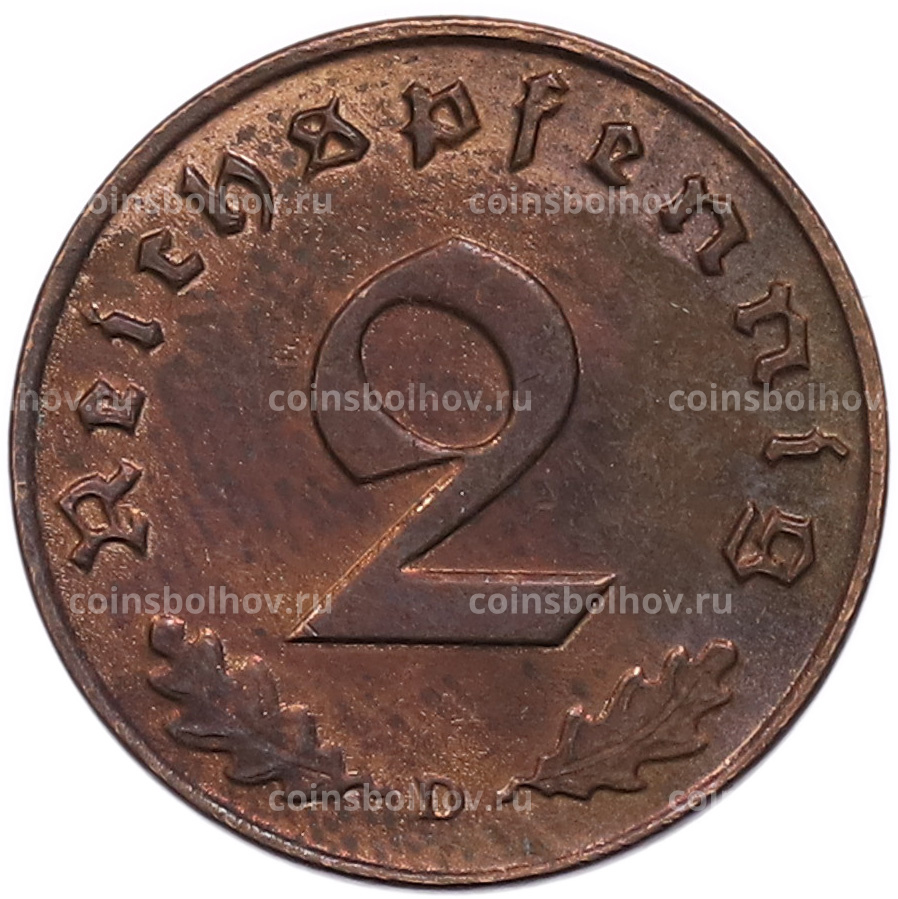 Монета 2 рейхспфеннига 1939 года D Германия