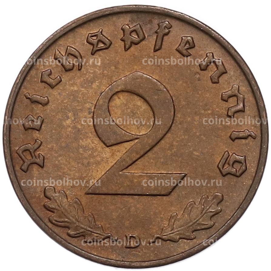Монета 2 рейхспфеннига 1938 года D Германия